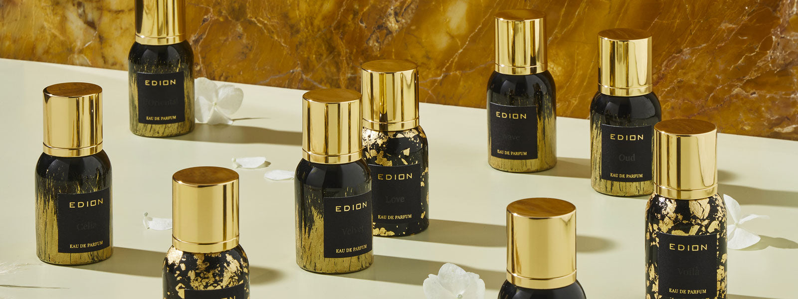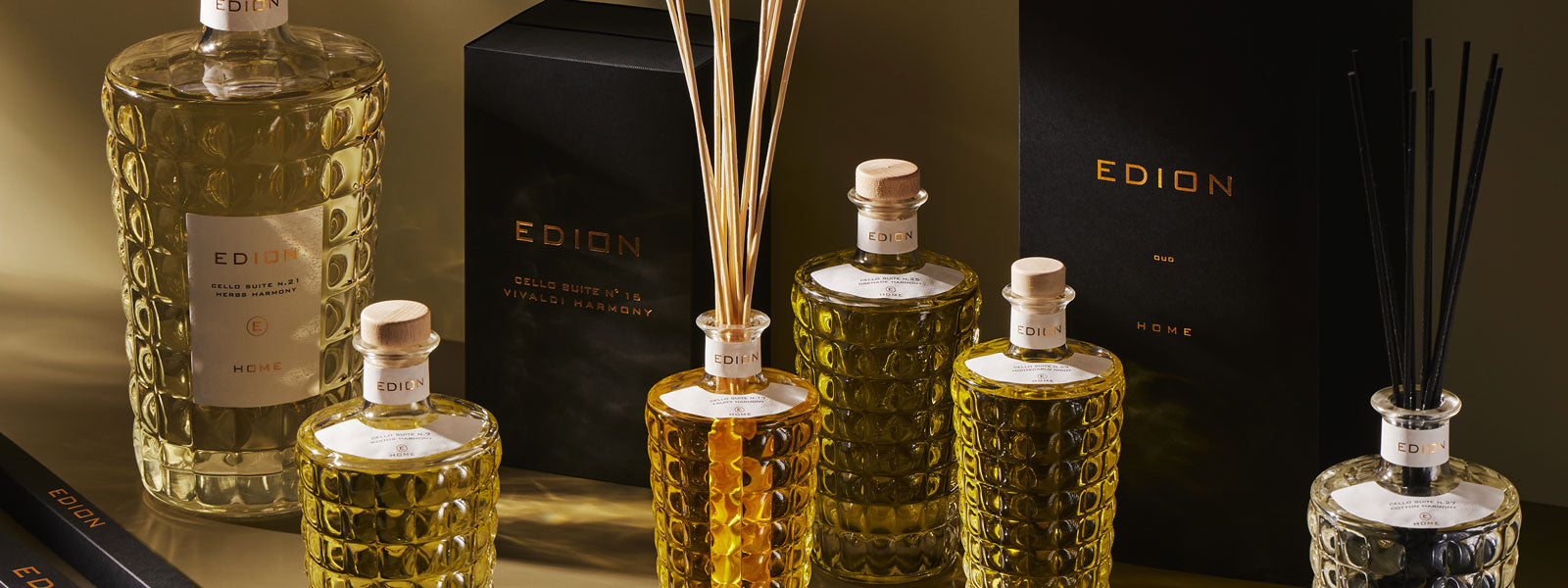 Gli aromi Edion fondono i profumi e i colori della Toscana con influenze orientali, utilizzando oli essenziali e estratti pregiati da Grasse, in Francia. Tutti i processi sono manuali e tradizionali, richiedendo tempo, pazienza e attenzione ai dettagli. Ingredienti come legni aromatici, ambra, incenso e rose si combinano per creare fragranze uniche.
